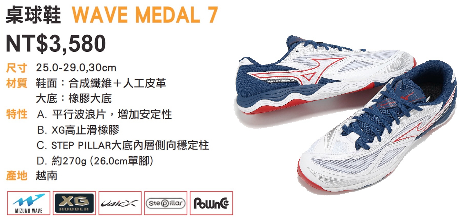 ▲WAVE MEDAL 7具備高避震緩衝及快速反應爆發力,